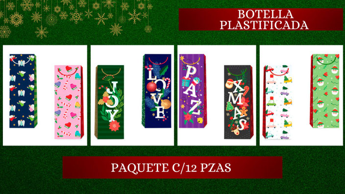 BOLSAS NAVIDEÑAS PLASTIFICADAS PREMIUM Y BOTELLA